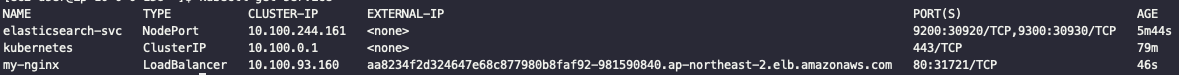 kubectl apply -f elasticSearch.yaml ์ ์ ๋ ฅํ์ฌ deployment, service๋ฅผ ์์ฑํ๋ค.