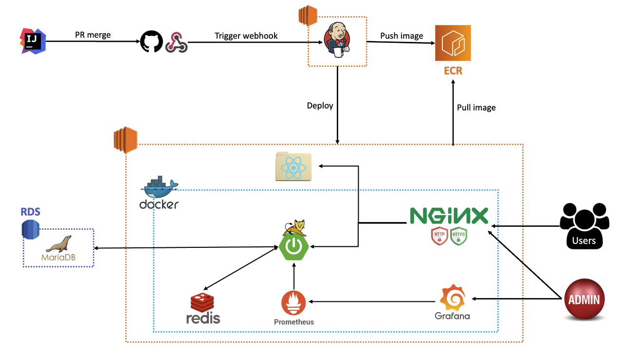 - PR์ด Master ๋ธ๋์น๋ก Merge๋๋ฉด Github WebHook์ด Trigger ๋๋ค.