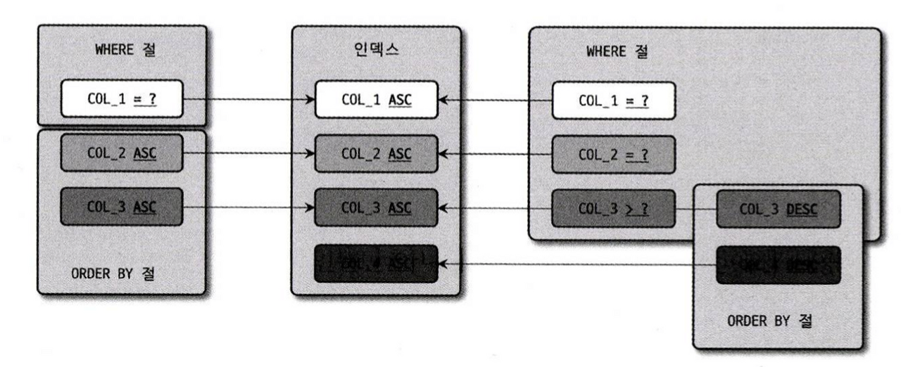 ์ ๊ทธ๋ฆผ์ WHERE ์กฐ๊ฑด์ ์์ COL_1๊ณผ COL_2๋ ๋๋ฑ ๋น๊ต ์กฐ๊ฑด์ด๊ณ , COL_3๋ ๋๋ฑ ๋น๊ต ์กฐ๊ฑด์ด ์๋ ์๋ค์ ๊ฐ์ ๋ฒ์ ๋น๊ต์กฐ๊ฑด์ด๋ฏ๋ก COL_3์ ๋ค์ ์ปฌ๋ผ์ธ COL_4์ ์กฐ๊ฑด์ ์์