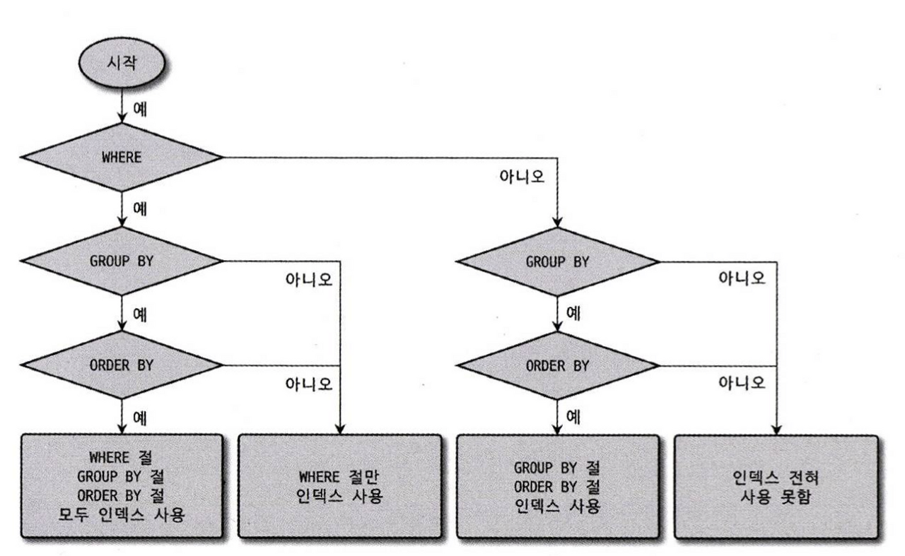WHERE์ ์กฐ๊ฑด๋ฟ๋ง ์๋๋ผ GROUP BY, ORDER BY ์ ๋ ์ธ๋ฑ์ค๋ฅผ ์ด์ฉํ ์ ์๋ค.
