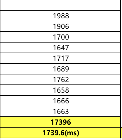 ํ์ง๋ง, ๊ทธ๋๋ ํ๊ท ์ ์ผ๋ก 1113.6ms ๊ฐ ์๋ชจ ๋๋ค.