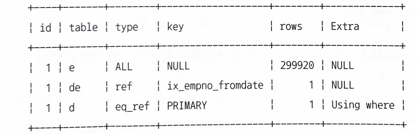 - ๊ฐ ๋ ํ ์ด๋ธ์ emp_no ์ปฌ๋ผ์ ๋ชจ๋ ์ธ๋ฑ์ค๊ฐ ์๋ ๊ฒฝ์ฐ์๋ ์ด๋ ํ ์ด๋ธ์ ๋๋ผ์ด๋น ํ ์ด๋ธ์ผ๋ก ์ ํํ๋ ์ธ๋ฑ์ค๋ฅผ ์ด์ฉํด ๋๋ฆฌ๋ธ ํ ์ด๋ธ์ ๊ฒ์ ์์ ์ ๋น ๋ฅด๊ฒ ์ฒ๋ฆฌ ๊ฐ๋ฅํ๋ค.