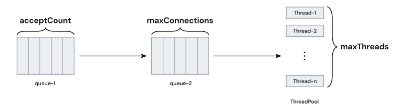 max-connections ์ด์์ ์์ฒญ์ด ๋ค์ด์์ ๋ ์ฌ์ฉํ๋ ์์ฒญ ๋๊ธฐ์ด Queue์ ์ฌ์ด์ฆ, ๊ธฐ๋ณธ ๊ฐ์ 100์ด๋ค.