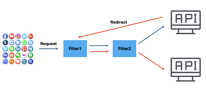 만약, Filter1, 2가 무거운 인증 필터라면 똑같은 절차를 2번씩이나 거쳐야 하므로 많은 부분에서 손해가 발생하게 된다.