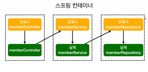 ์คํ๋ง์ด ์ปจํ ์ด๋์ ๋น์ ๋ฑ๋กํ ๋ ์ง์ง Spring Bean๋ง๊ณ Proxy(๋๋ฆฌ, ๊ฐ์ง) Spring Bean์ ์ง์ง ์์ ๋ฑ๋กํด์ค๋ค. jointPoint๋ก ์ด๋ค ์คํ์ด ๋ฐ์ํ๋ฉด ๊ทธ๋ ์ง์ง Bean์ ํธ์ถ ํด์ค๋ค.
