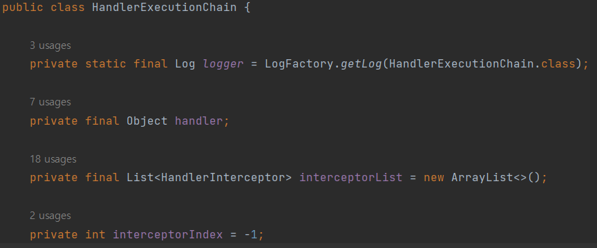 HanlderExecutionChain은 어떻게 생겼는지 확인해보겠습니다.