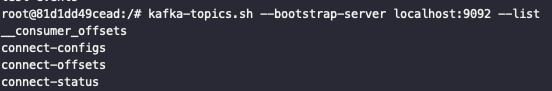 (1) kafka connect ์คํ (zookeeper์ kafka๊ฐ ์คํ์ค์ผ ๋ Mac๊ธฐ์ค)