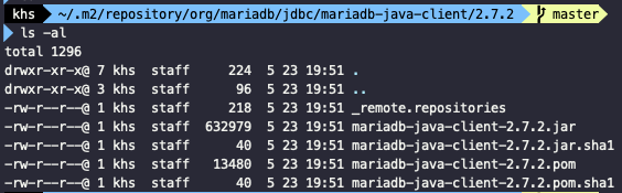 ~/.m2/repository/org/mariadb/jdbc/mariadb-java-client/2.7.2 ๊ฒฝ๋ก๋ก ์ด๋