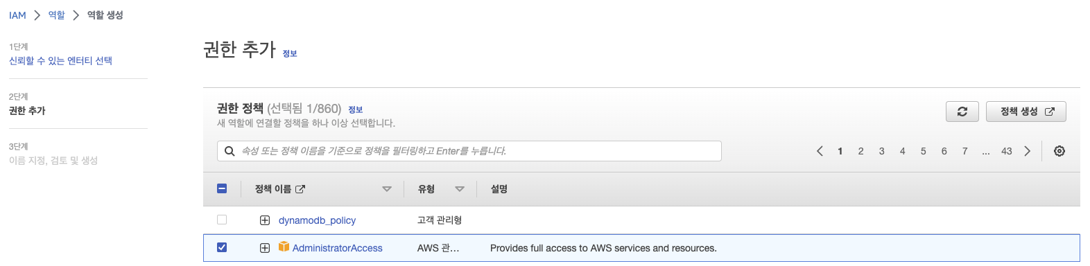 Role ์์ฑ์ด ์๋ฃ๋๋ฉด ์ด์ EC2์ ๋ค์ด๊ฐ์ IAM ์ญํ ์ ์์ ํด์ฃผ๋ฉด ๋๋ค.