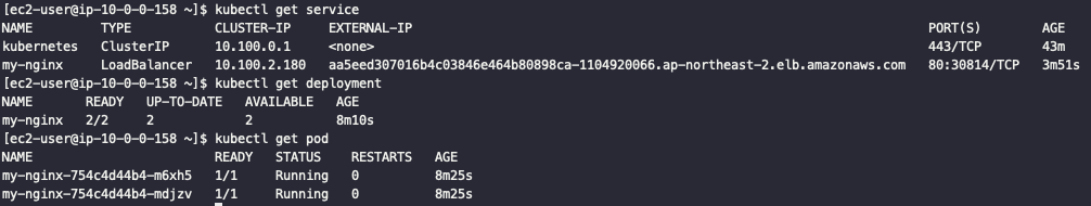 ๊ทธ๋ฌ๋ฉด ์๋์ ๊ฐ์ด service, deployment, pod ๋ฅผ ์กฐํํ ์ ์๋ค.